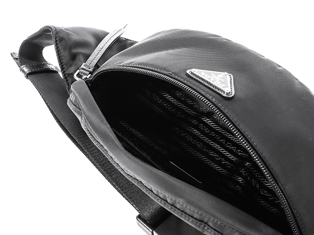 ★商品詳細・商品品番: 1BL034_064_F0002_V_OOO・ベルト・メタルパーツ・フロントにエナメルメタルのトライアングルロゴ付・ファスナー開閉式・ナイロンライニング・高さ: 12cm・幅: 26cm