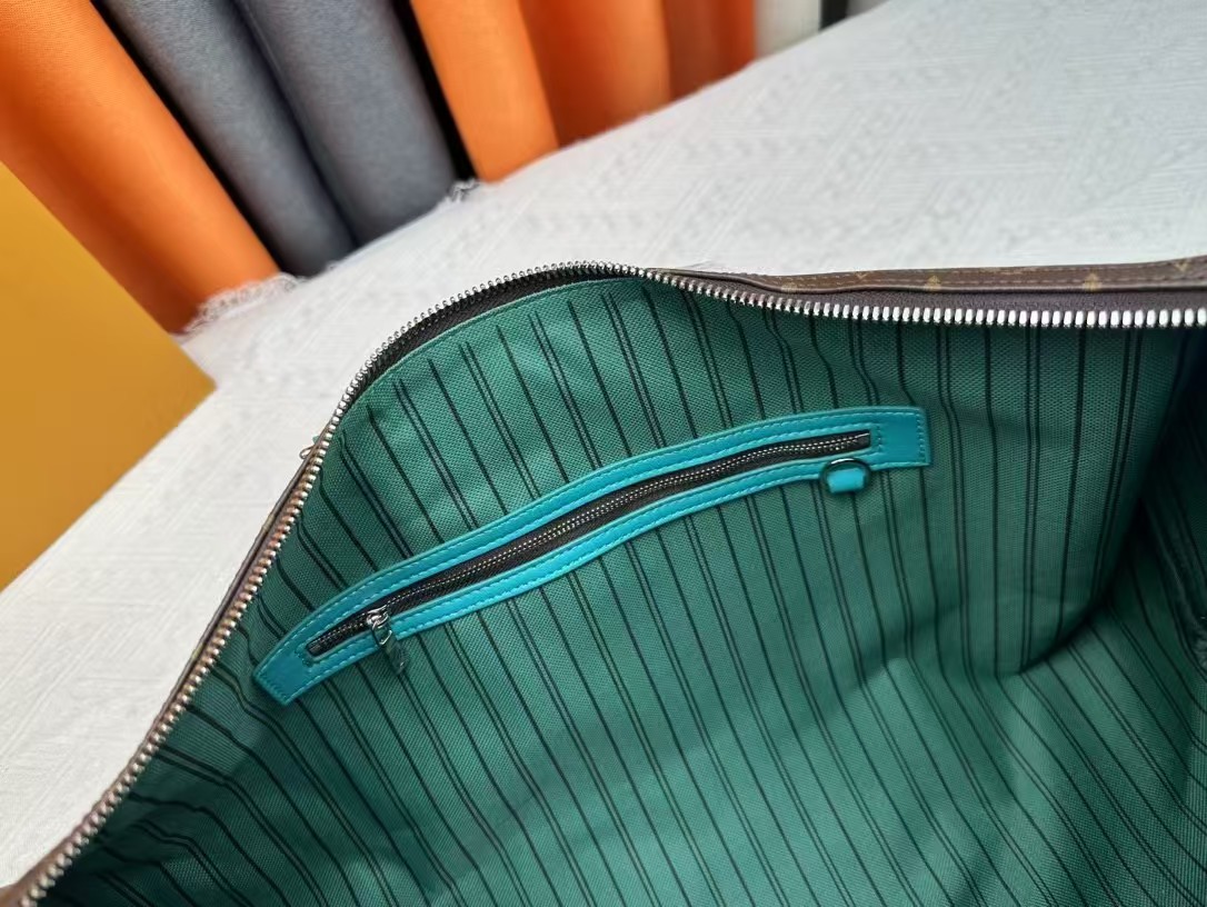 キーポル バンドリエール 50 トラベル バッグは、明るいトップ ハンドル、取り外し可能なショルダー ストラップ、レザーのネームタグを備えたモノグラム マカサー キャンバスで作られています。ストライプの生地の裏地は、ブランドのオリジナルのトランクからインスピレーションを得ています。