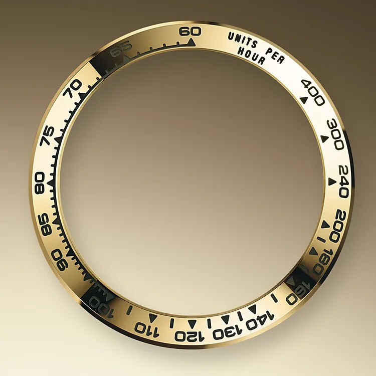 タキメーター目盛り、および3つのカウンターとプッシャーを備えたコスモグラフ デイトナは、耐久レースドライバーの究極の計時ツールとなるようにデザインされた。べゼルは、経過時間に基づき所定の距離間の平均速度を示すタキメーター目盛りを備えている。
