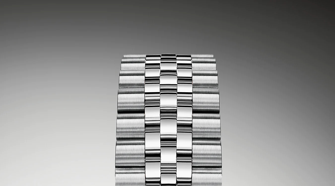 ロレックスのブレスレットやクラスプの設計 開発 製造 そして製品に課される厳しい試験には 最先端のハイテク技術が活用されている。また すべての時計の部品と同様に 人間の目による照査によって 完璧な美しさが保証されている。ジュビリーJubilee しなやかで快適な5列リンクの金属のブレスレットで 1945年にオイスター パーペチュアル デイトジャストの発売に合わせて特別にデザインされた。
