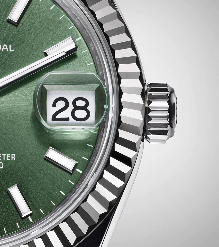 一見してすぐにそれとわかる ロレックスを代表する特徴のひとつである。ギリシャ神話に登場する1つ目の巨人からその名がつけられたサイクロップレンズは 視認性を高め 時計の象徴的な日付表示を2.5倍に拡大する。その他のロレックス時計の特徴と同様 サイクロップレンズには発明 調査 開発 そして完璧性への飽くなき探究の歴史が息づいている。