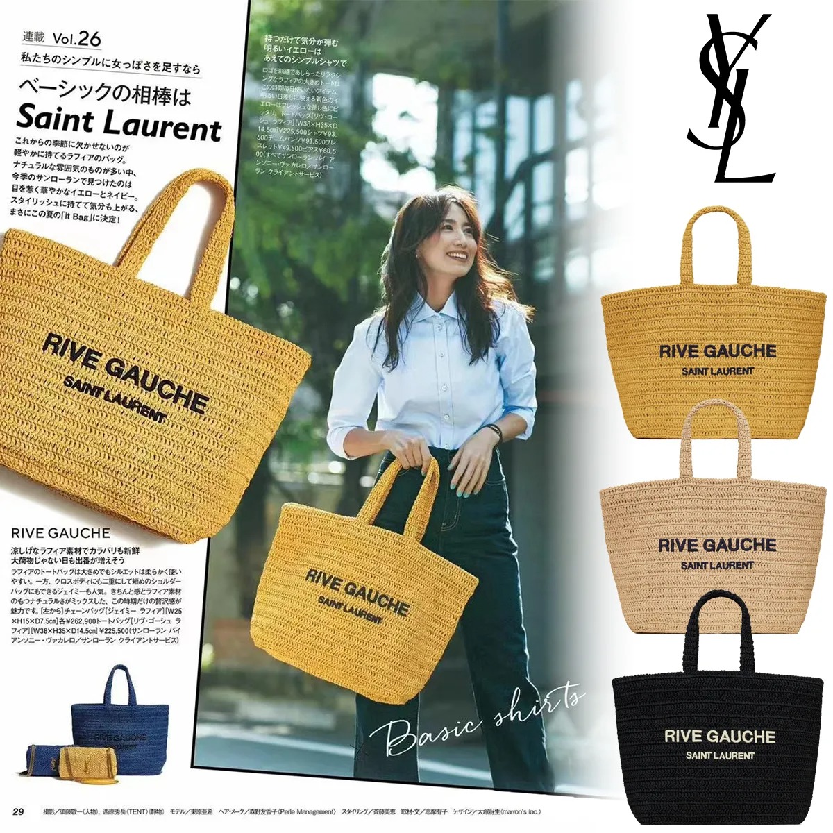📣これからの季節に欠かせないのが軽やかに持てるラフィアのバッグ。🔥VERY雑誌掲載!夏感あふれる新作バッグが登場!——サンローランソフト トートバッグリヴ・ゴーシュ(ラフィア)