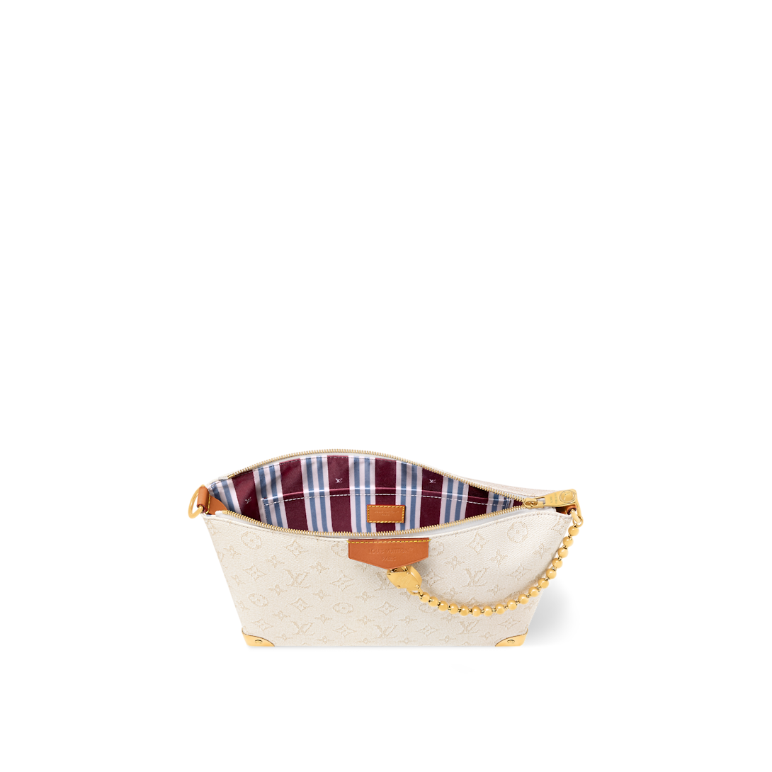 Bobo Trunk ハンドバッグはモノグラム ヘリテージ キャンバスで作られており、Trunk ファミリーに新たな傑作が加わりました。柔らかなシルエットにトランクの角をあしらい、ビーズチェーンが箱型の南京錠にエレガントにつながっています。コンパクトなデザインには日常の必需品を収納できる十分なスペースがあり、トップハンドルと取り外し・調節可能なショルダーストラップにより、さまざまな持ち運び方法が可能です。